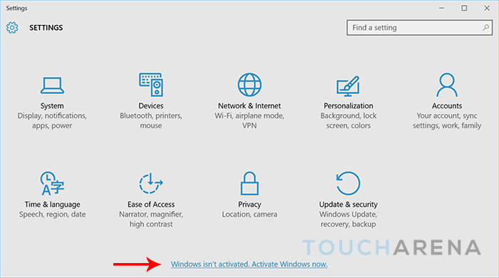 - Click or tap the link at the bottom of the windows that reads Windows isn’t activated. Activate Windows now.