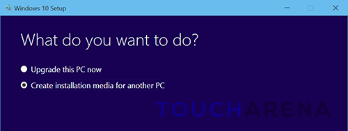 - Launch the tool, and on the “What do you want to do?” screen, select “Create installation media for another PC” and click “Next”.